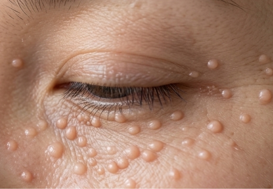 좁쌀 형태의 낭종으로, 피부 재생 주기나 피지 배출 기능이